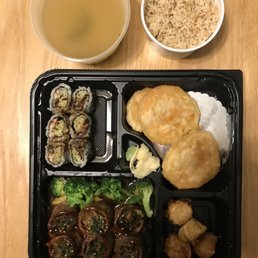 Eight years later, much better. First, the green tea was delicious and was refilled without asking. Second, my entree was very good: shrimp with vegetables in mild garlic sauce (choice of white or brown rice). I didn't want to have to wonder what vegetables, so asked them for broccoli, green beans and mushrooms. They readily accomodated my request and lots of shrimp so I was too full to consider dessert. My wife enjoyed the seafood soup, and my son, who likes sushi, comes here with his friends more frequently. Our waitress did not speak English well, but called over an older woman who did - no big deal. We'll be back.
